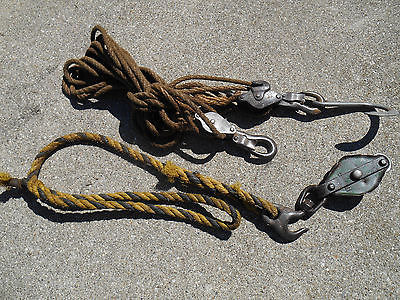 Vintage Block and Tackle Pulley Barb Wire Fence Stretcher - Farm Tool / Rope