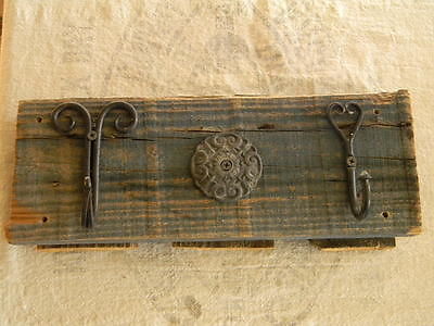 Title (ebay affiliate link): Rustic Wood Wall Hanger, Iron Hooks, Faded Blue Paint