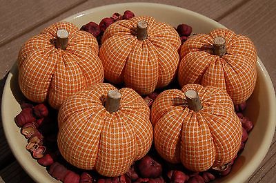 Title (ebay affiliate link): Primitive Halloween Yellow Orange w White Check Homespun Pumpkin Ornies