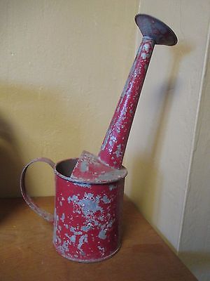 UNUSUAL OLD PRIMITIVE WATERING CAN,SMALL 4 1/2" WITH 7" SPOUT & SPRINKLER RED