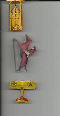 Vintage Three Cracker Jack Toys, Airplane, Snowsled and Jockey on Racing Horse