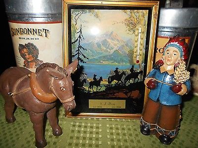 Title (ebay affiliate link): LOT VINTAGE ADVERTISING THERMOMETER WESTERN THEMED SILHOUETTE DONKEY NATIVE