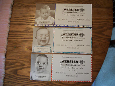 Title (ebay affiliate link): (3) 1950's FORD DEALER INK BLOTTERS-WEBSTER MOTORS, MARSEILLES, IL-BABY PICS-NOS