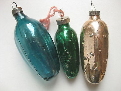 Vintage Russia Christmas Silver Glass Ornaments "3 Pickles"