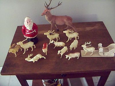 PAPER MACHE ? SANTA, CELLOID REINDEER AND FARM AMINALS-CHRISTMAS IS COMING-NR