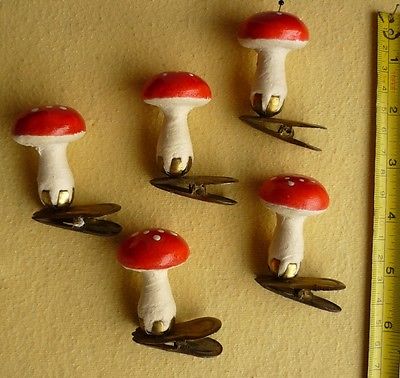 Title (ebay affiliate link): VTG.FIVE COTTON MUSHROOMS CHRISTMAS TREE ORNAMENT ON CLIP