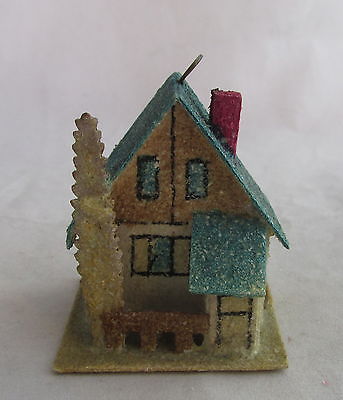 Antique 1920s Czech Mica & Cardboard Village House Christmas Ornament