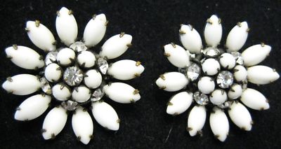 SCHREINER EARRINGS 18 MILK GLASS & 7 CRYSTAL GEMSTONES