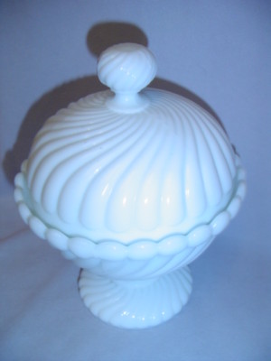 Milk Glass Cover Compote Candy Swirl 7.25" Tall