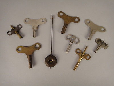 Title (ebay affiliate link): Eight Antique Mantel Clock Keys and Pendulum Brass Parts
