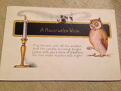 VINTAGE HALLOWEEN POSTCARD OWL AND CANDLESTICK 1920(?)