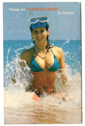 Title (ebay affiliate link): (#505) Beautiful Smiling Bikini Beach Swimsuit Pinup Girl Florida 1960s Postcard
