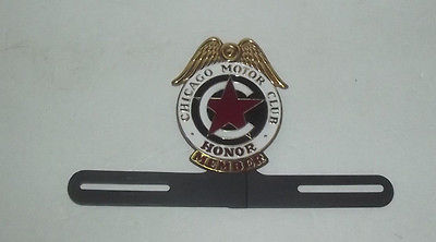 NICE CHICAGO MOTOR CLUB HONOR MEMBER METAL LICENSE PLATE TOPPER
