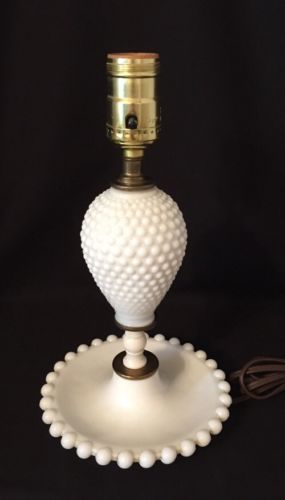 Vintage White Milk Glass Hobnail Lamp With Jewerly Base.