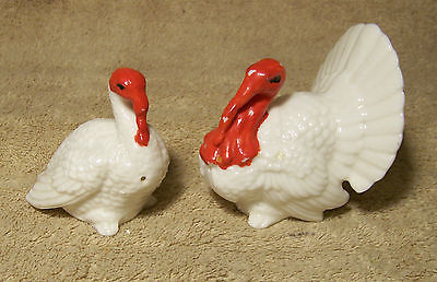 Cute Vintage Pair of Milk Glass Turkey SALT & PEPPER SHAKERS