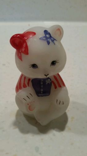 Nice Fenton Art MILK Glass STARS & STRIPES 2001 BEAR Figurine