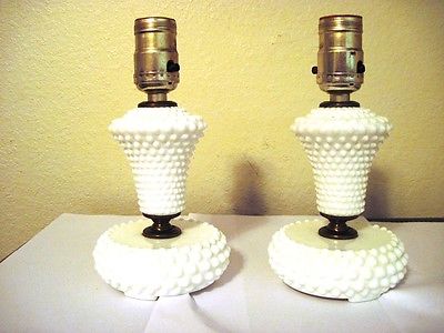 Vintage 2 Hobnail White Milk Glass Table Lamp Desk Lamps