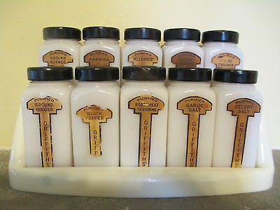 Antique Spice Rack w/Milk Glass Containers
