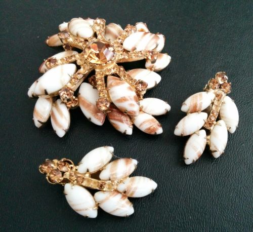 Title (ebay affiliate link): Vintage Gold Tn JULIANA Milk Glass Glitter Flower Brooch Earring SET 166