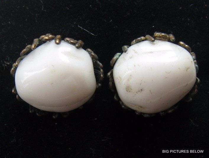 Title (ebay affiliate link): Vintage Earrings Screwback Clipon SIGNED MIRIAM HASKELL BIG White Milk Glass