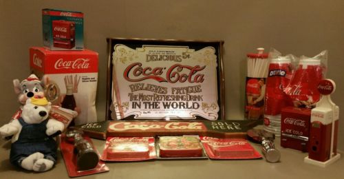 Title (ebay affiliate link): LOT OF VTG COCA-COLA COKE ADVERTISING TRAY COASTER WOODEN SIGN STUFFED ANIMALS