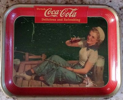 Title (ebay affiliate link): 1940 Vintage Coca Cola serving tray with smiling Sailor girl on fishing pier