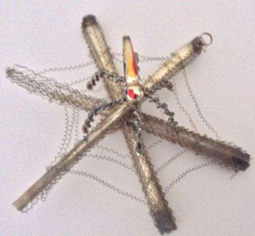 Title (ebay affiliate link): Antique Glass Christmas Ornament - Beaded Wire Wrapped Silver Spider Web