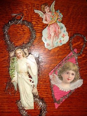 Title (ebay affiliate link): Vintage antique tinsel diecut chromos Christmas tree decorations, 1930s
