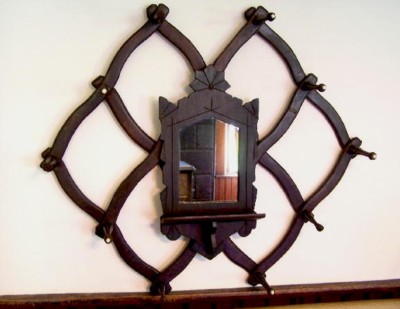 Title (ebay affiliate link): Antique Vtg Hat Rack has Mirror with Tramp Art Frame