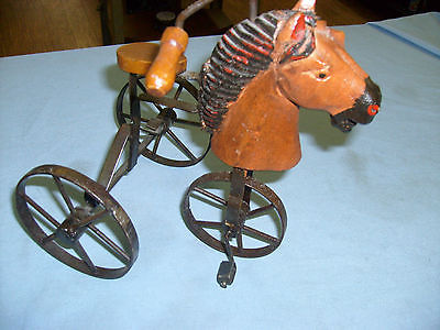 Title (ebay affiliate link): VINTAGE MINI MINIATURE TRICYCLE WITH WOOD HORSE HEAD - TABLE DECOR