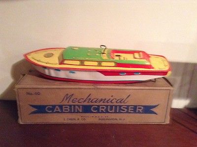 Title (ebay affiliate link): 1950's Chein Tin Cabin Cruiser Windup MIB Boxed Large Size