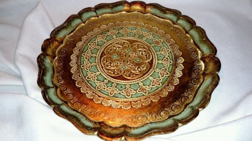 Title (ebay affiliate link): Vtg Italian Florentine Gold & Green Gilt Wood Tray Plate Tole Ware Handled Italy