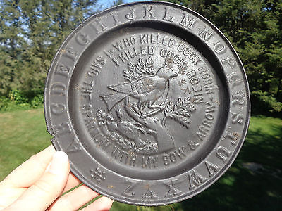 Antique Children's ABC Alphabet Tin Plate Cock Robin Vintage Toy Nursery Rhyme