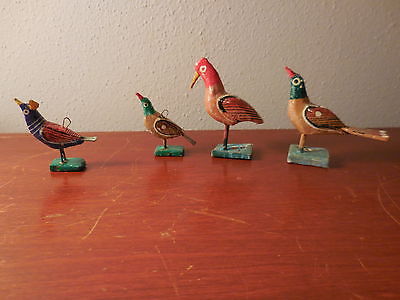 Vintage Miniature Folk Art Wooden Birds Lot of (4) Colorful Hand Painted