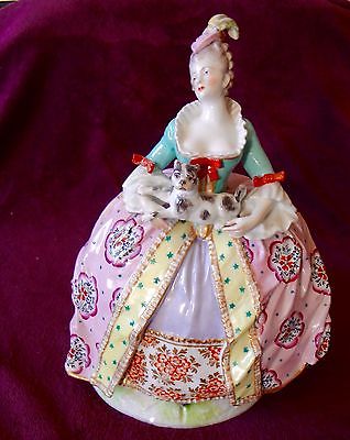 Stunning Antique Dresden Lady Dog Figurine C. 1910 10" Tall