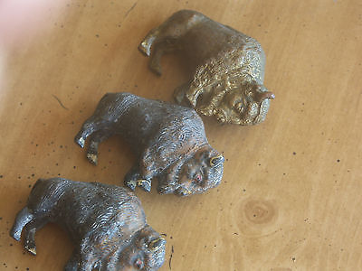 PRE 1900 3 BUFFALO HEARD OF THREE SMALL METAL BUFFALO NICE EXAMPLE
