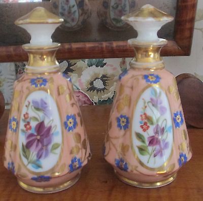PR ANTIQUE FRENCH PORCELAIN HAND PAINTED PERFUME COLGNE BOTTLES