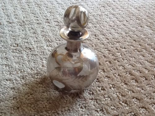 ANTIQUE STERLING SILVER OVERLAY PERFUME BOTTLE W/ STOPPER