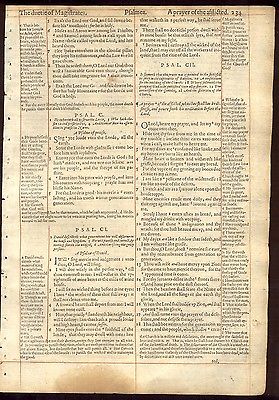 1597 Geneva Folio Red Ruled Bible Leaf/RARE/THE BOOK OF PSALMS/POPULAR PSALM 100