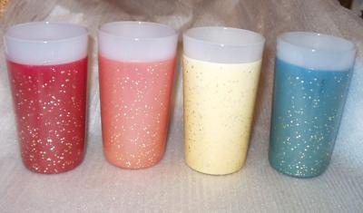 RETRO mid century! milk glass THUMBLERS bright speckled