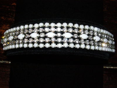 Vintage WEISS Milk Glass & Rhinestone Wide Bracelet