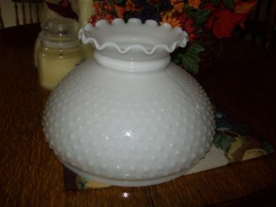 VINTAGE MILK GLASS HOBNAIL OIL LAMP SHADE