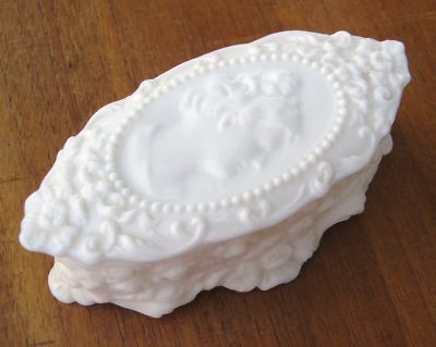 Vintage Fostoria Cameo Jenny Lind Milk Glass Vanity Box
