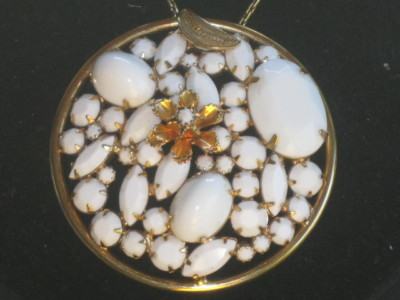 Estate Vintage Large Alice Caviness Milk Glass Pendant