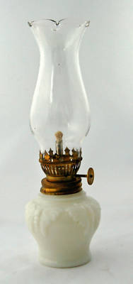 Vintage Miniature Oil Lamp Milk Pressed Glass Butterfly