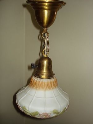 Title (ebay affiliate link): Vintage Brass Hanging Light Fixture w/ Ornate Painted Shade Milk Glass