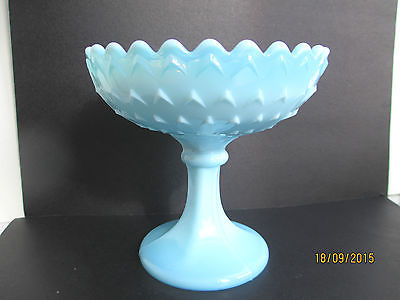 Rare beautiful blue milk glass comport with very unusual arrow decor; fluted rim