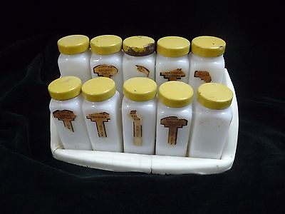 10 Vintage Griffiths Milk Glass Spice Jars & Rack