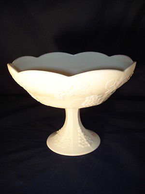 Title (ebay affiliate link): INDIANA GLASS COMPANY MILK GLASS HARVEST GRAPE PEDESTAL FRUIT BOWL 7 1/2" HIGH