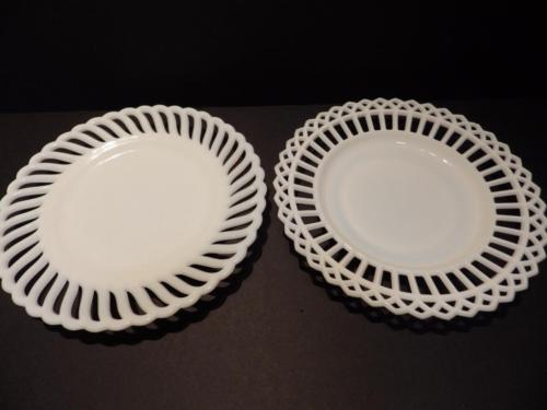 Title (ebay affiliate link): 2 White Milk Glass Vintage Plates Pierced Edge 8.5" Canton Gothic +1